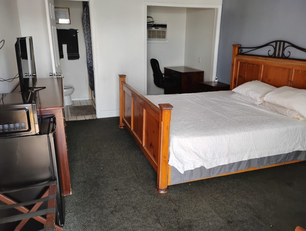 Pet rooms are nice!!!! Pretty open, hard floors for easy clean up in case of accidents. Rooms have nice tvs, mini fridges, dressers, and end tables. No bedbugs. Front desk ladies are very nice and helpful.
